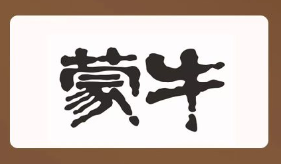 二、美学维度:形式与内涵的视觉交响 (一)形式美学:平衡与韵律的视觉魔法 从视觉美学的形式法则审视,蒙牛LOGO的字体布局遵循了“对称与均衡”的美学原则。“蒙”与“牛”二字在视觉重量上达成精妙平衡,“蒙”字笔画繁复却不显臃肿,“牛”字笔画简洁却不失厚重,二者在白色背景与深棕底色的衬托下,形成稳定的视觉重心。同时,字体的笔画形态构成了丰富的“韵律美”,曲线与直线交织,如同音乐中的旋律起伏,给人以视觉上的韵律享受。